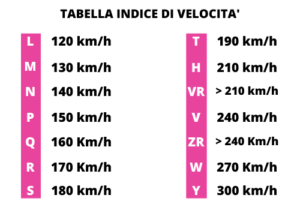 Spesso affiancato da una lettera che indica, invece, la velocità di sicurezza massima di una gomma.
